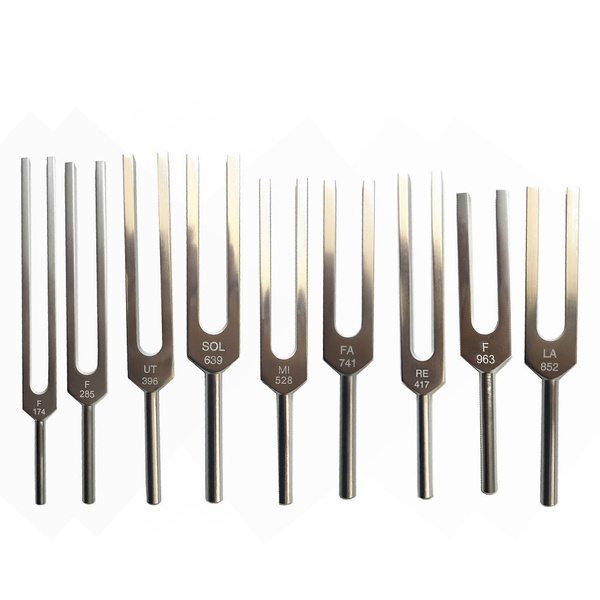 Zestaw 9 kamertonów Solfeggio: 174 Hz, 285 Hz, 396 Hz, 417 Hz, 528 Hz, 639 Hz, 741 Hz, 852 Hz, 963 Hz – pełne spektrum uzdrawiających częstotliwości